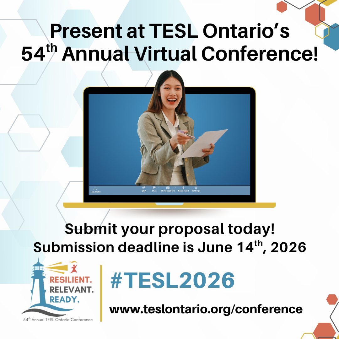 Save the date for the TESL Ontario Annual Conference 2026, taking place virtually from November 4–6, 2026. Join us for three days of dynamic professional learning, connection, and inspiration designed for educators and professionals in the language teaching field.