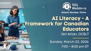TESL Ottawa is pleased to invite you to their virtual Winter Professional Development Event on Saturday, February 21, 2026, from 9:00 a.m. to 12:00 p.m., featuring two timely and thought-provoking webinars focused on AI, education, and the future of teaching and learning.